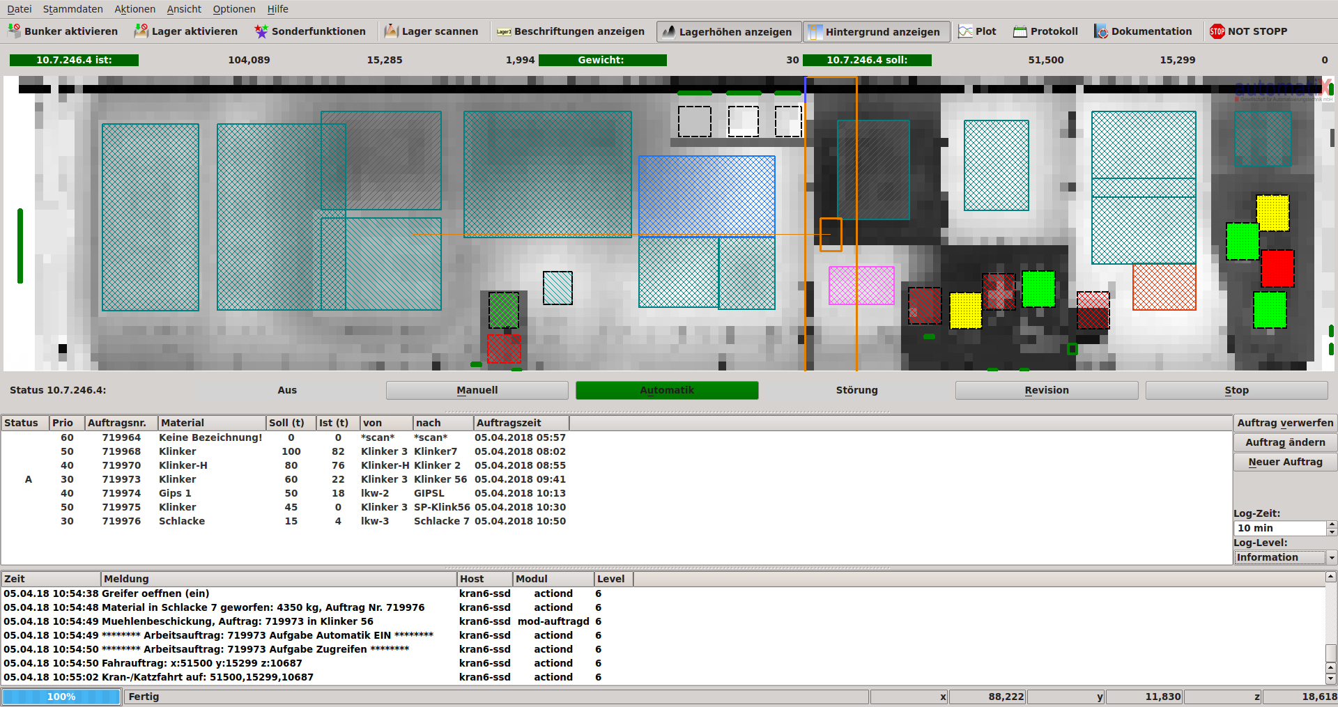 Das System bucht und verwaltet mehrere Krane im Hand- oder Robotikbetrieb auch auf einer Kranbahn.
